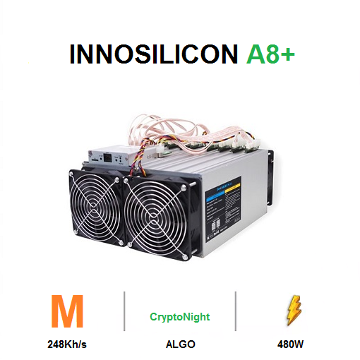 دستگاه ماینر اینوسیلیکون مدل A8 Plus یکی از پر کاربرد ترین دستگاه های موجود در تجهیزات ماینینگ است که از تراشه A8+ CryptoMaster ASIC بهره برده و از طریق پورت اترنت و با یک کابل شبکه می توان آن را به شبکه متصل نمود. دستگاه ماینر مدل A8 Plus  به 4 عدد فن خنک کننده مجهز شده که می تواند گرمای زیاد داخل کیس را به بیرون منتقل نماید و دمای عملیاتی آن بین صفر تا 85 درجه سانتیگراد می باشد و میزان برق مصرفی آن 480 وات است که می تواند با ولتاژ ورودی 12 ولت کار کند.
