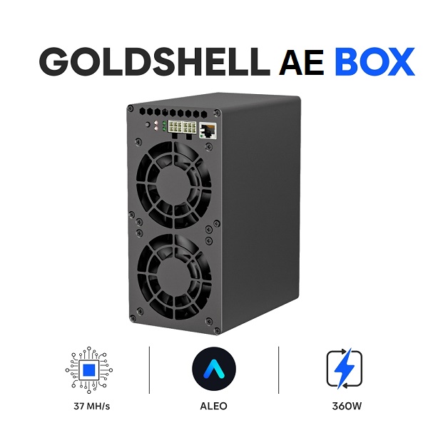 🔹 دستگاه Goldshell AE-BOX با قدرت 37Mh/s و مصرف انرژی 360W یکی از گزینههای مناسب برای استخراج Aleo است.